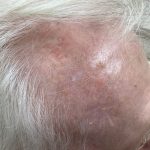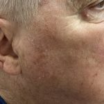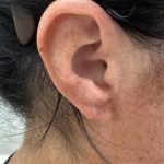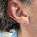 A 72-year-old man from Fuquay-Varina presented with a basal cell cancer on the rim of his right ear. The cancer was removed by board-certified dermatologist and board-certified, fellowship trained Mohs surgeon Dr. Thomas Knackstedt with two stages of Mohs surgery and repaired with a skin graft.